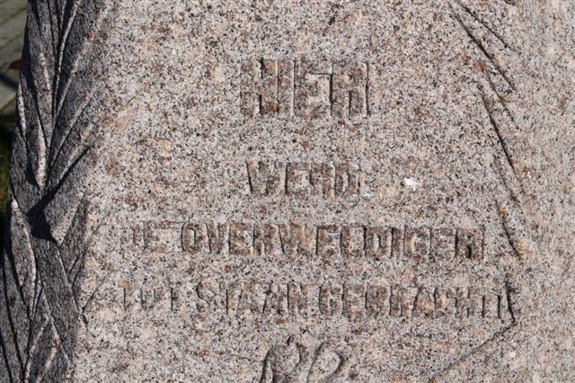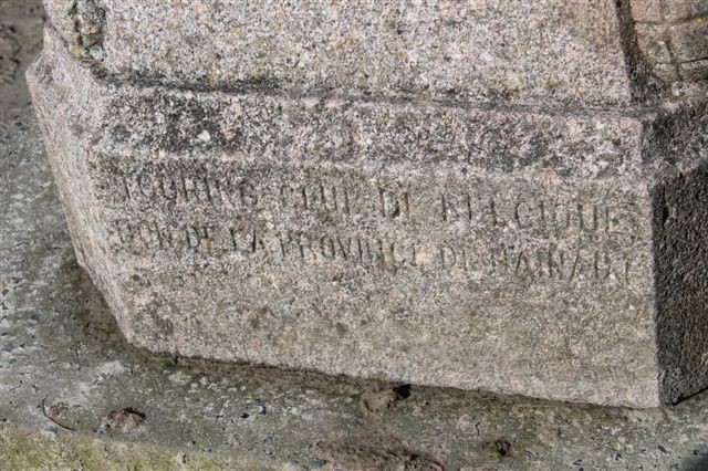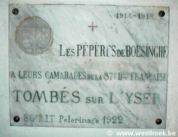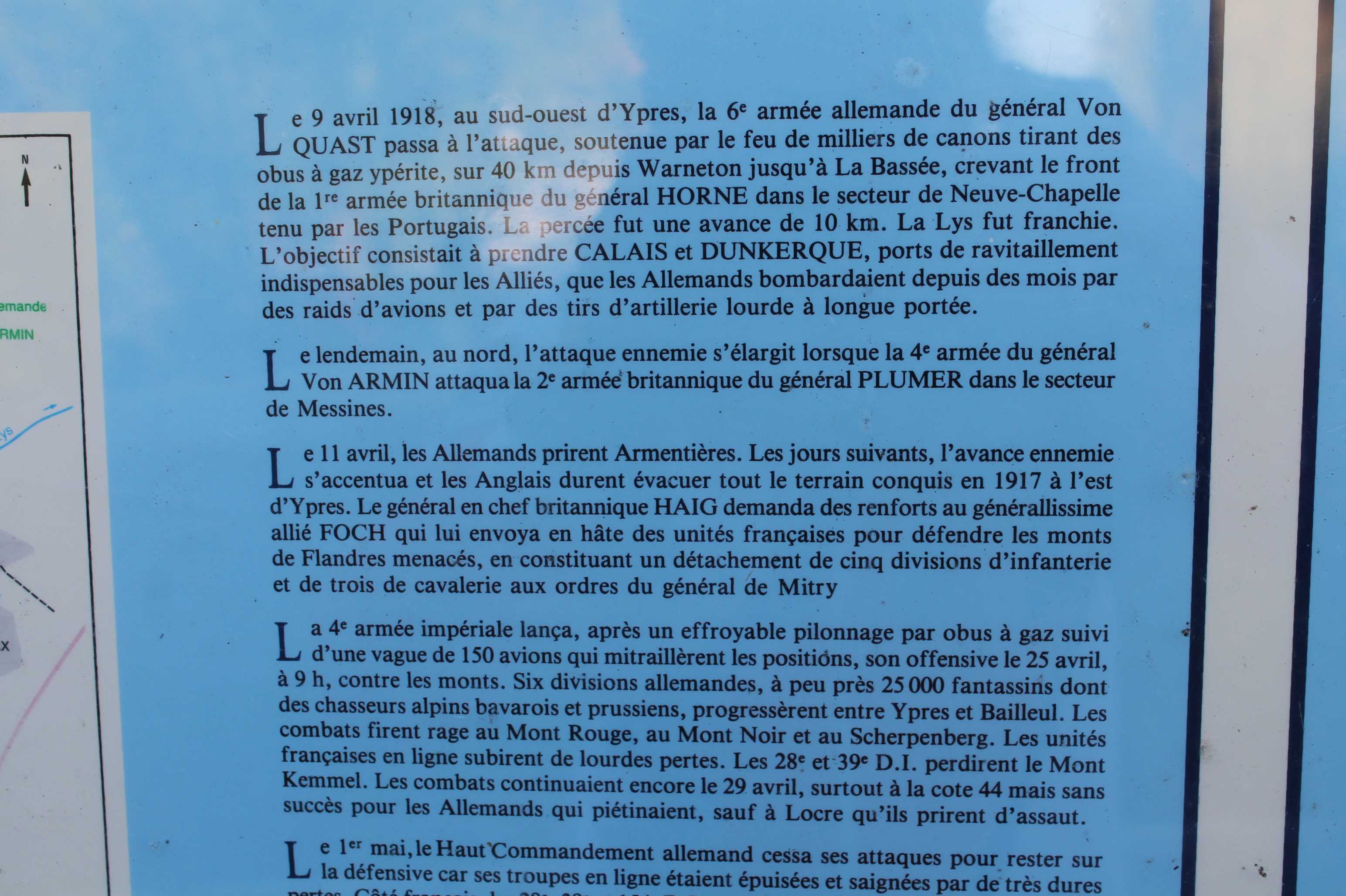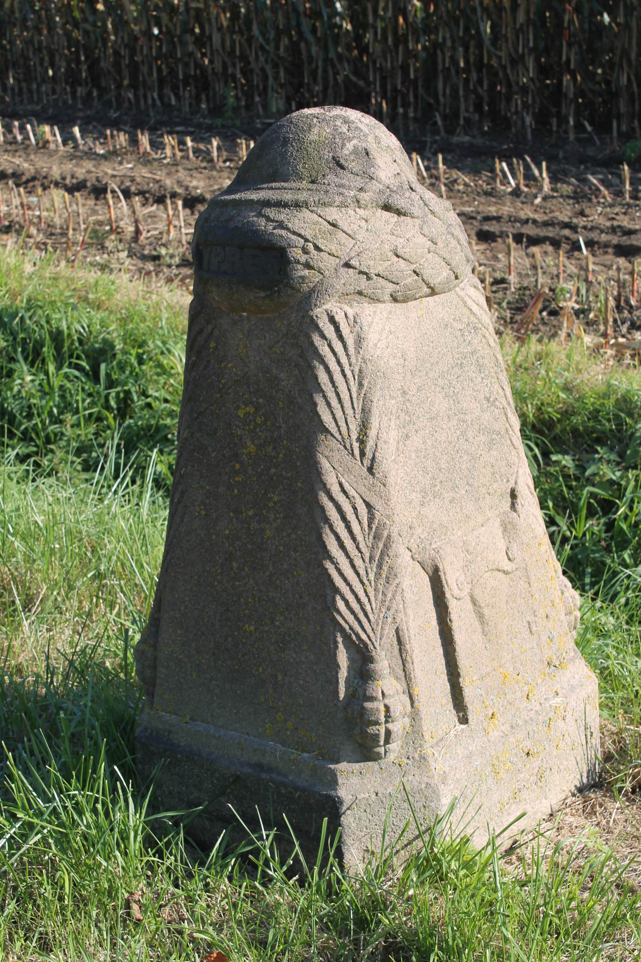 Cette borne a été dynamitée par les troupes allemandes durant la guerre 1939-1945 et la moitié inférieure qui subsistait a été sauvegardée par un habitant de Saint-Jans Cappel dans son jardin. Ce vestige a été réinstallé le 11 novembre 1998 sur un socle de pierre ferrugineuse du Mont-Noir proche.